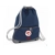 A water resistant navy or red draw string bag with grey trim.