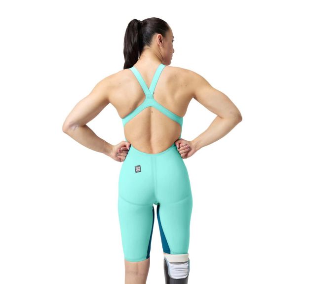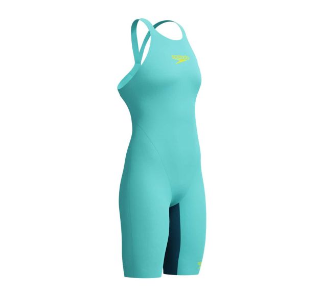 The Speedo Women's Fastskin LZR Pure Valor 2.0 Openback Kneeskin - Green/Orange is a lightweight race...